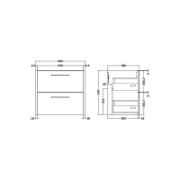 Solar Wall Hung 2 Drawer Vanity Cabinet 600mm