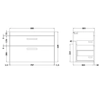600mm 2 Drawer Wall Hung Unit (355MM)