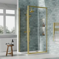 Nuie 800x800mm Brushed Brass Square Pivot Shower Enclosure With Tray and Side Panel