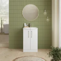 Nuie Classique 500mm Satin White Floor Standing 2 Door Vanity Unit With Basin