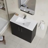 Nuie Lunar 800mm Satin Grey Floor Standing 2 Drawer Vanity Unit With 1 Tap Hole Basin