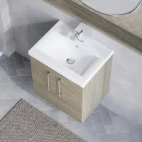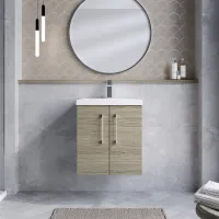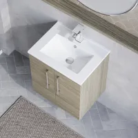 Nuie Arno 500mm Solace Oak Wall Hung 2-Door Vanity Unit With Basin