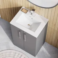 Nuie 600mm Anthracite Woodgrain Floor Standing 2-Door Vanity Unit With 1 Tap Hole Basin