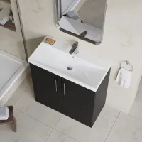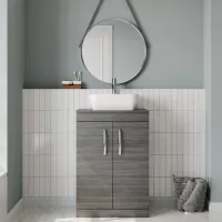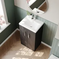 Nuie 500mm Anthracite Woodgrain Floor Standing 2-Door Vanity Unit With Basin