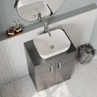 Nuie Lunar 600mm Satin Grey Floor Standing 2 Drawer Vanity Unit With Thin Edge Ceramic Basin