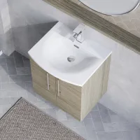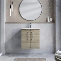 Nuie 600mm Bleached Oak Wall Hung 2-Drawer Vanity Unit With Laminate Worktop
