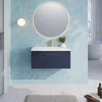 Nuie 800mm Midnight Blue Wall Hung 1-Drawer Vanity Unit With Soft Close Drawer & 1 Tap Hole Basin