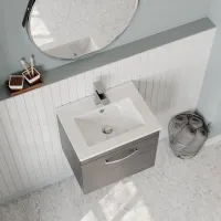 Nuie Athena 500mm Anthracite Woodgrain Wall Hung Soft Close Drawer Vanity Unit With Basin