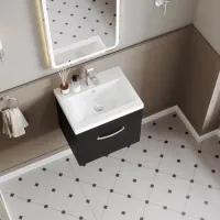 Nuie Athena 600mm Charcoal Black Wall Hung Single Drawer Vanity Unit With 1 Tap Hole Basin