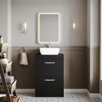 Nuie Athena 600mm Floor Standing 2 Drawer Vanity Unit With Worktop & Handles