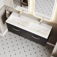 Nuie 1200mm Charcoal Black Wall Hung 2-Drawer Vanity Unit With Soft Close Drawers & Laminate Worktop