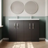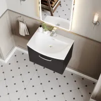 Nuie Athena 600mm Charcoal Black Floor Standing 2 Door Vanity Unit with Curved 1 Tap Hole Basin