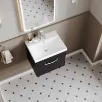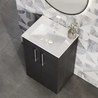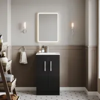 Nuie 500mm Soft Black Floor Standing 2-Door Vanity Unit With Basin With Chrome Handles