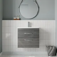 Nuie Arno 600mm Solace Oak Wall Hung 2-Drawer Vanity Unit With Basin