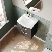 Hudson Reed Juno 600mm Graphite Grey Woodgrain Floor Standing 2-Door Vanity Unit & Basin