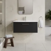 Nuie Arno 800mm Charcoal Black Floor Standing 2-Drawer Vanity Unit with Mid-Edge Basin