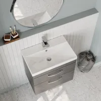 Nuie Athena 600mm Anthracite Woodgrain 2 Drawer Soft Close Wall Hung Vanity Unit With Basin