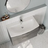 Nuie Athena 800mm Anthracite Woodgrain Wall Hung 2 Drawer Vanity Unit with Curved 1 Tap Hole Basin