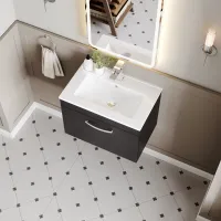 Nuie Athena 600mm Charcoal Black Wall Hung Single Drawer Vanity Unit With 1 Tap Hole Basin