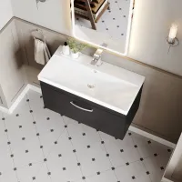 Nuie Athena 800mm Charcoal Black Wall Hung Single Drawer Vanity Unit With Basin