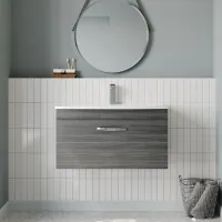 Nuie Athena 805mm Gloss Grey Wall Hung Single Drawer Vanity Unit With Sparkling White Worktop