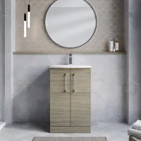 Nuie Arno 500mm Solace Oak Floor Standing 2-Door Vanity Unit With 1 Tap Hole Basin and Handles