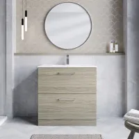 Nuie Arno 800mm Solace Oak Floor Standing 2-Drawer Vanity Unit & Basin