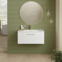 Nuie 800mm Wall Hung Gloss White 1-Drawer Vanity Unit Including Basin