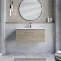 Nuie 800mm Solace Oak Wall Hung 1-Drawer Vanity Unit With Basin