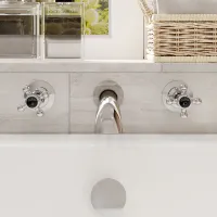 White Topaz With Crosshead Handle Wall Mounted Bath Spout & Stop Taps