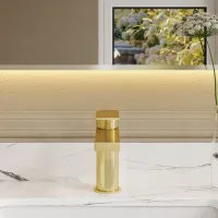 Roveri Brushed Brass Tall Basin Mixer (No Waste)