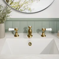 Old London White Topaz With Crosshead Handle 3 Tap Hole Basin Mixer - Brushed Brass / White
