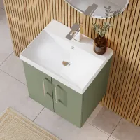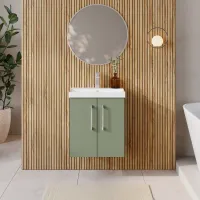 Nuie Arno 500mm Wall Hung Satin Green 2-Door Vanity Unit With Basin