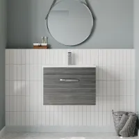 Nuie Athena 600mm Anthracite Woodgrain Wall Hung Single Drawer Vanity Unit With 1 Tap Hole Basin