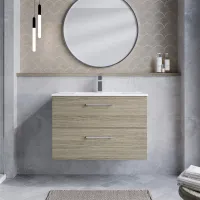 Nuie 800mm Solace Oak Wall Hung 2-Drawer Vanity Unit With Basin