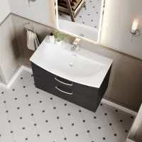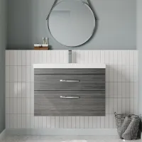 Nuie Athena 800mm Anthracite Woodgrain Wall Hung 2 Drawer Vanity Unit With Thin-Edge 1 Tap Hole Basin