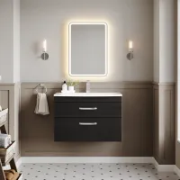 Nuie Athena 800mm Charcoal Black Wall Hung 2 Drawer Vanity Unit With 1 Tap Hole Basin