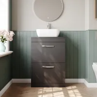 Nuie Athena 600mm Gloss Grey Floor Standing 2 Drawer Vanity Unit With Worktop