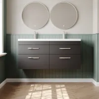 Nuie Athena 1200mm Gloss Grey Wall Hung Vanity Unit With 4 Drawers & Twin Polymarble Basin