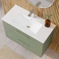 Nuie 800mm Satin Green Wall Hung 2-Drawer Vanity Unit With Basin