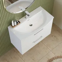 Nuie 800mm Wall Hung 2-Drawer Vanity Unit Including Curved Basin