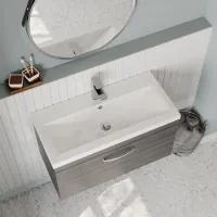 Nuie Athena 800mm Anthracite Woodgrain Wall Hung Single Drawer Vanity Unit With 1 Tap Hole Basin
