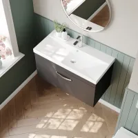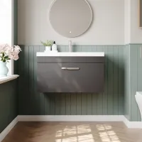 Nuie Athena 800mm Gloss Grey Wall Hung Single Drawer Vanity Unit With Basin