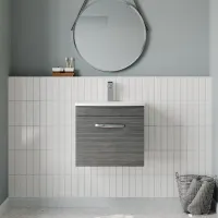 Nuie Athena 500mm Anthracite Woodgrain Wall Hung Single Drawer Vanity Unit with 1 Tap Hole Basin