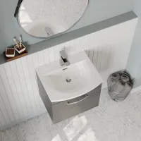 Nuie Athena 600mm Gloss Grey Wall Hung Single Drawer Vanity Unit Including Worktop