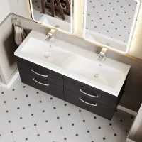 Nuie Athena 1200mm Charcoal Black Wall Hung Vanity Unit With Twin Basin