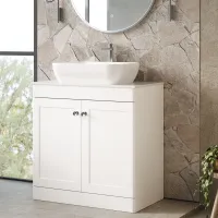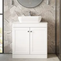 Nuie Classique 800mm 2 Door Satin White Floor Standing Vanity Unit With Fireclay Basin