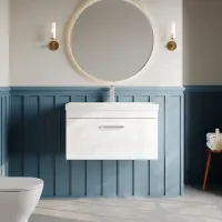 Nuie Athena 800mm Wall Hung Single Drawer Vanity Unit with 1 Tap Hole Basin