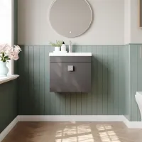 Nuie Athena 500mm Gloss Grey Wall Hung 1 Drawer Vanity Unit With Basin & Handle