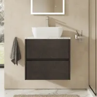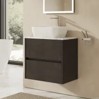 Nuie Havana 600mm Graphite Grey Wall Hung 2 Drawer Unit with Colour Match Worktop